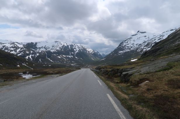 I said to Lucie that what we needed was a bit of wind. Maybe God, or one of the scary Norse ones, was listening again, because the wind rose almost immediately. In literally a few seconds, the whole of the roadway, from its distant ingress at the bottom of the pass to the crest, a few hundred metres away to our left became visible.